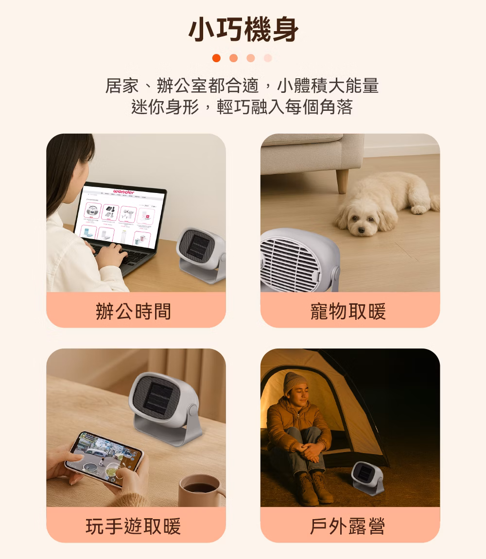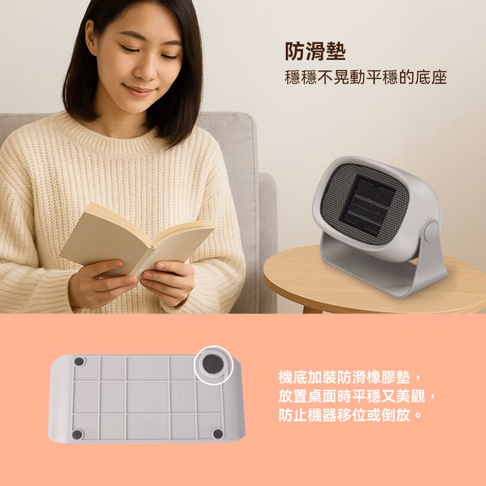 ◆冬日溫暖,陪你過冬◆雙重安全保護裝置◆可調整旋轉角度135?角度調整◆主體採用防火阻燃材質◆進風口濾網、過濾灰塵潔淨空氣◆防滑墊保護止滑