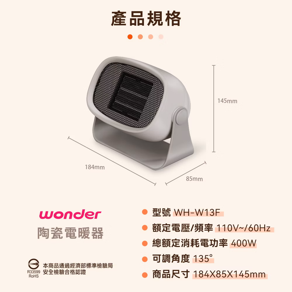 型號:WH-W13F商檢合格字號:R33599NCC型式認證碼:免驗顏色:冬日奶白額定電壓/頻率: 110V~/60Hz總額定消耗電功率:400W材質:PP 塑膠電源線長度:140cm單品重量:0.54Kg單品尺寸(mm):184X85X145彩盒尺寸(mm):195X120X155配件: 說明書(含保證書)*1國際條碼:4710577766808商品原產地:中國保固:一年保固