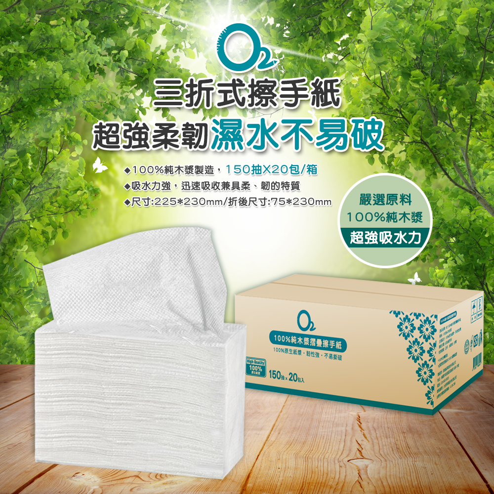 ◆100%純木漿擦手紙 ◆韌性強,不易撕破 ◆吸水力強,迅速吸收兼具柔、韌的特質 ◆尺寸:225*230mm/折後尺寸:75*230mm