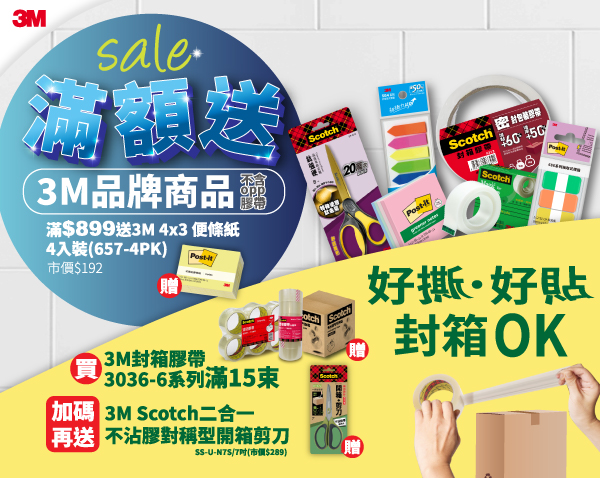3M Scotch大管芯OPP透明封箱膠帶/3010-6PK/48mmx82M/6捲x9束/共54捲/箱