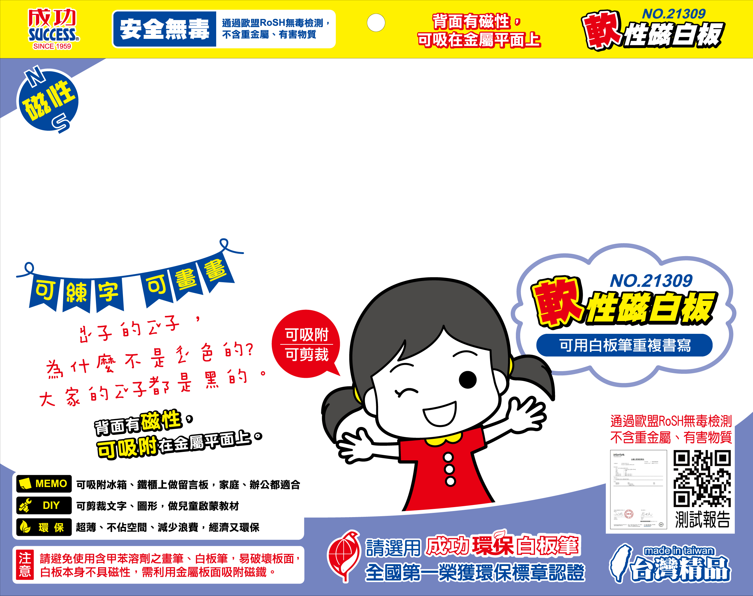 成功SUCCESS軟性磁白板/經濟型/21309/長30x寬40cm