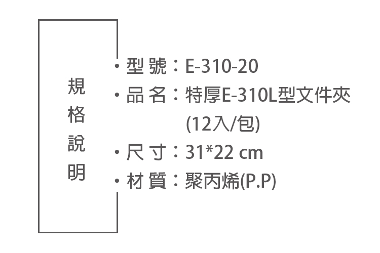 規格:E-310-20/12入/包/白/長31x寬22x厚0.2mm