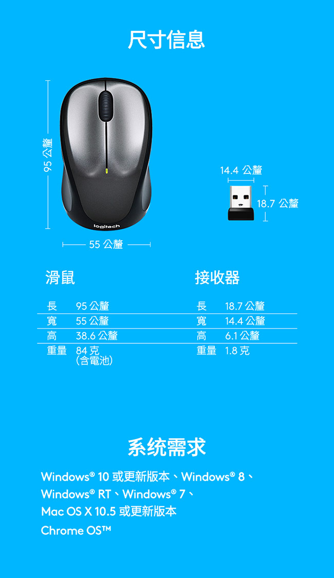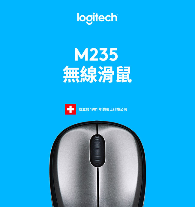 羅技Logitech無線滑鼠/M235n/銀黑/New