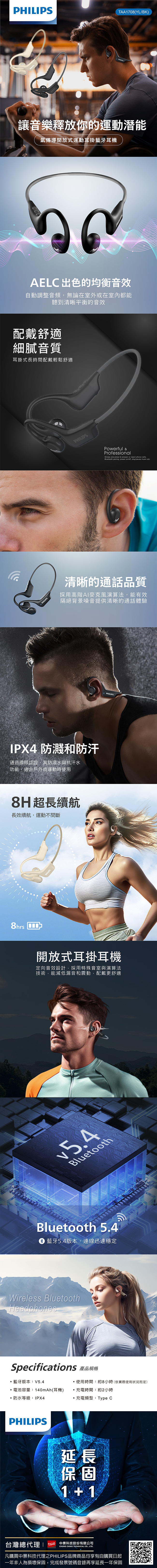飛利浦PHILIPS氣傳導運動耳掛藍牙耳機/TAA1708BK/黑