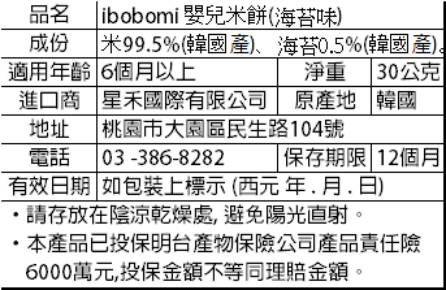 ibobomi 嬰兒米餅(海苔味)30g/包