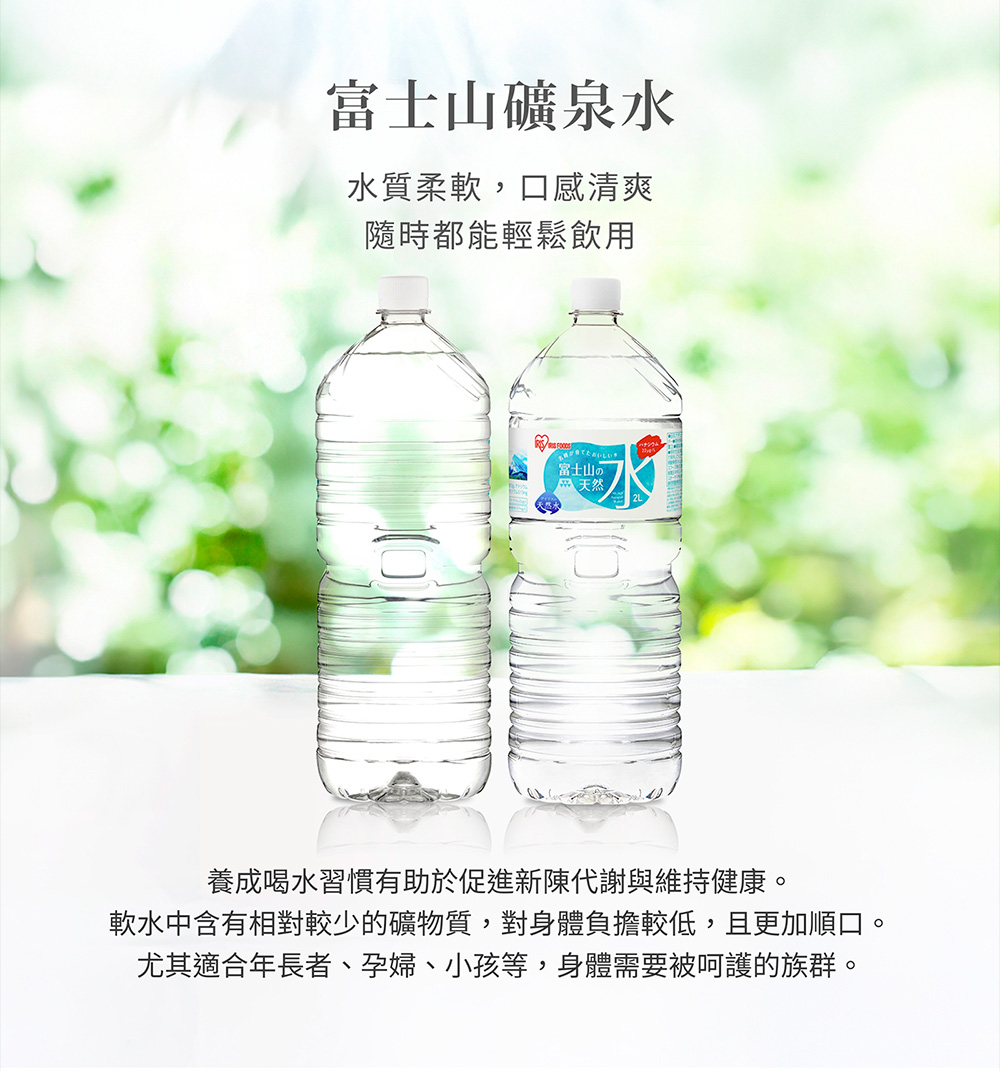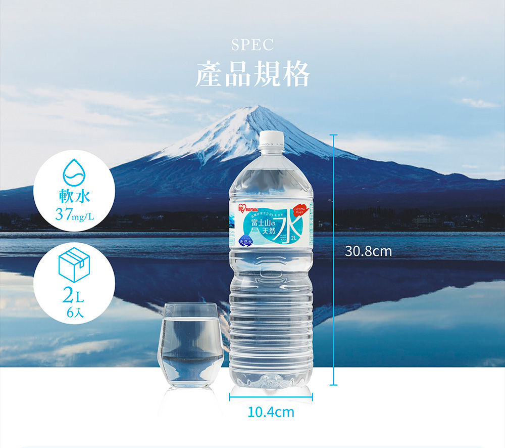 ‧ 2L大容量 ‧ 日本原裝進口,靜岡縣產‧ 美味、安心、安全‧ 保留富士山最天然的山泉風味‧ 採用最低限度加工(過濾.殺菌)將泉水風味完整封存